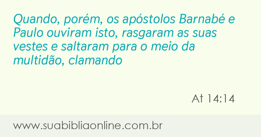 Quando, porém, os apóstolos Barnabé e Paulo ouviram isto, rasgaram as suas vestes e saltaram para o meio da multidão, clamando