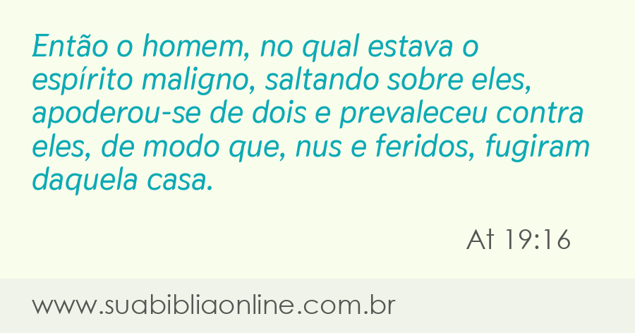 Então o homem, no qual estava o espírito maligno, saltando sobre eles, apoderou-se de dois e prevaleceu contra eles, de modo que, nus e feridos, fugiram daquela casa.