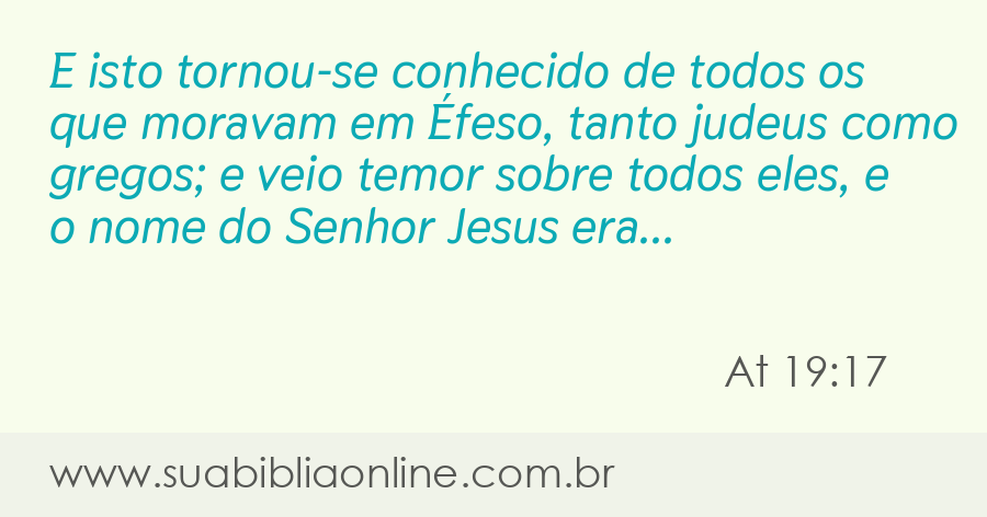 E isto tornou-se conhecido de todos os que moravam em Éfeso, tanto judeus como gregos; e veio temor sobre todos eles, e o nome do Senhor Jesus era engrandecido.