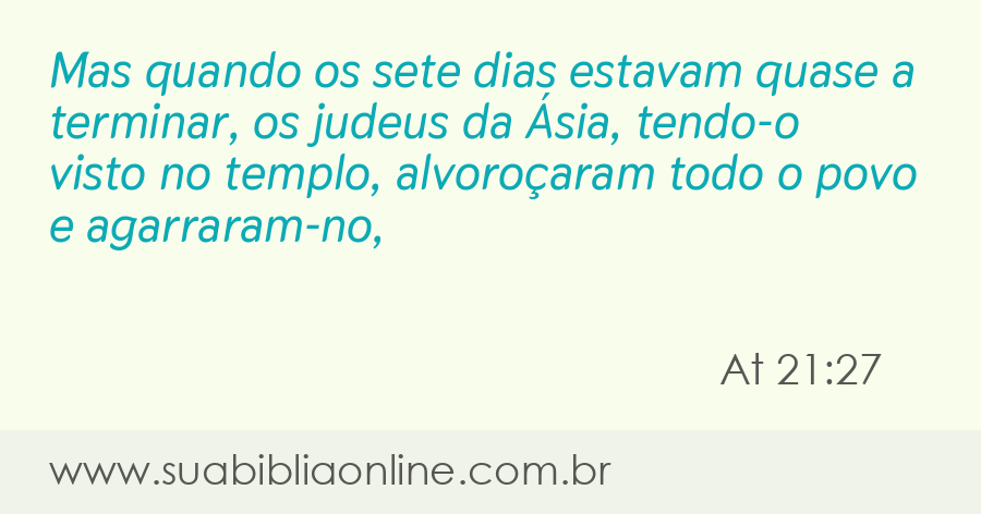 Mas quando os sete dias estavam quase a terminar, os judeus da Ásia, tendo-o visto no templo, alvoroçaram todo o povo e agarraram-no,