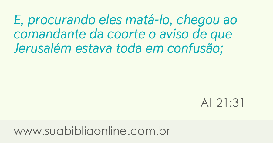E, procurando eles matá-lo, chegou ao comandante da coorte o aviso de que Jerusalém estava toda em confusão;