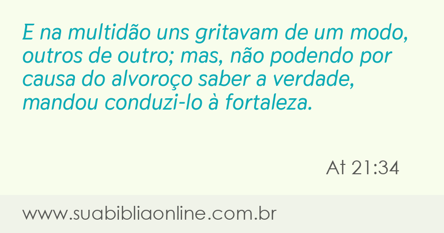 E na multidão uns gritavam de um modo, outros de outro; mas, não podendo por causa do alvoroço saber a verdade, mandou conduzi-lo à fortaleza.