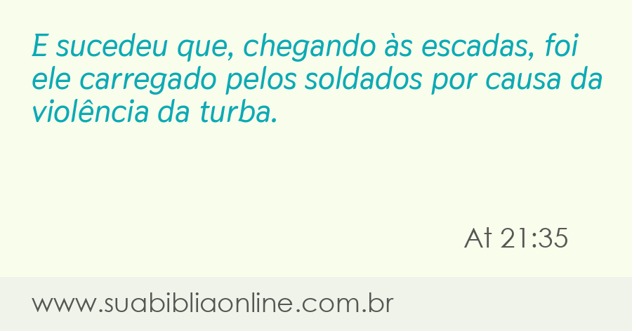 E sucedeu que, chegando às escadas, foi ele carregado pelos soldados por causa da violência da turba.