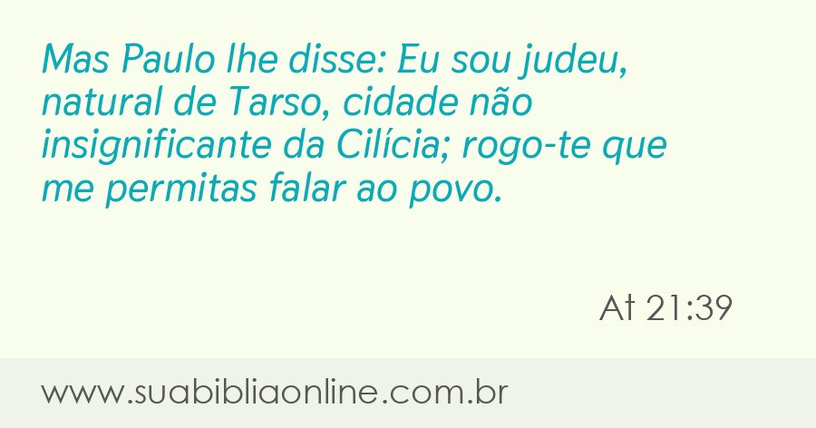 Mas Paulo lhe disse: Eu sou judeu, natural de Tarso, cidade não insignificante da Cilícia; rogo-te que me permitas falar ao povo.