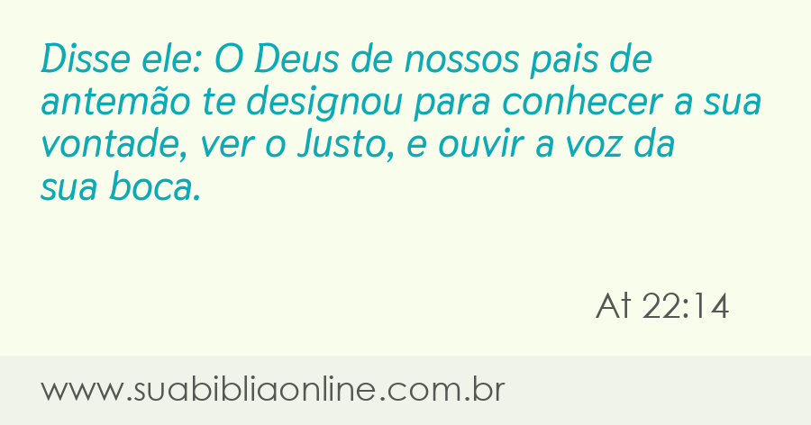 Disse ele: O Deus de nossos pais de antemão te designou para conhecer a sua vontade, ver o Justo, e ouvir a voz da sua boca.