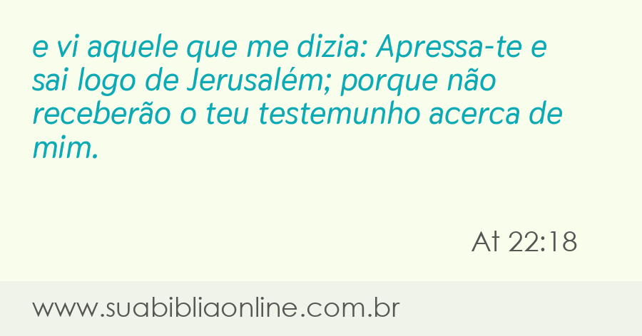e vi aquele que me dizia: Apressa-te e sai logo de Jerusalém; porque não receberão o teu testemunho acerca de mim.