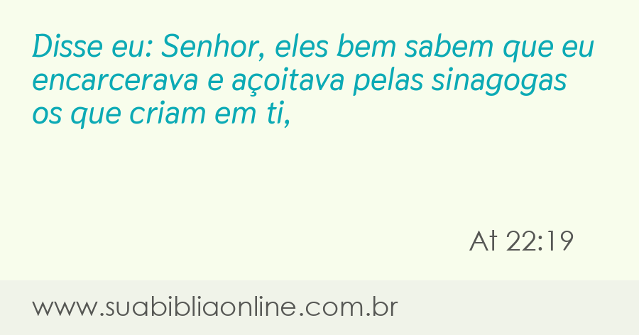 Disse eu: Senhor, eles bem sabem que eu encarcerava e açoitava pelas sinagogas os que criam em ti,