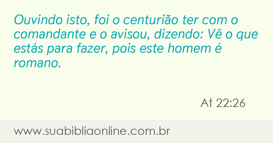 Ouvindo isto, foi o centurião ter com o comandante e o avisou, dizendo: Vê o que estás para fazer, pois este homem é romano.