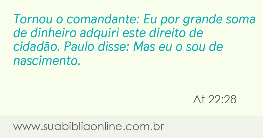 Tornou o comandante: Eu por grande soma de dinheiro adquiri este direito de cidadão. Paulo disse: Mas eu o sou de nascimento.