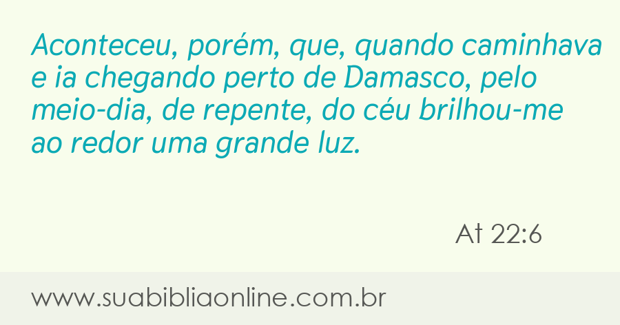 Aconteceu, porém, que, quando caminhava e ia chegando perto de Damasco, pelo meio-dia, de repente, do céu brilhou-me ao redor uma grande luz.