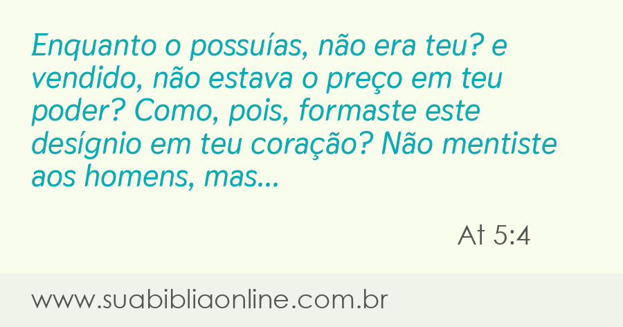 Enquanto o possuías, não era teu? e vendido, não estava o preço em teu poder? Como, pois, formaste este desígnio em teu coração? Não mentiste aos homens, mas a Deus.