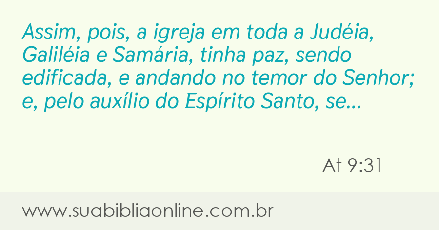 Assim, pois, a igreja em toda a Judéia, Galiléia e Samária, tinha paz, sendo edificada, e andando no temor do Senhor; e, pelo auxílio do Espírito Santo, se multiplicava.