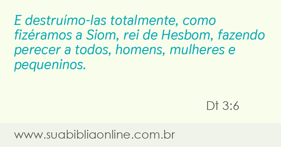 E destruímo-las totalmente, como fizéramos a Siom, rei de Hesbom, fazendo perecer a todos, homens, mulheres e pequeninos.