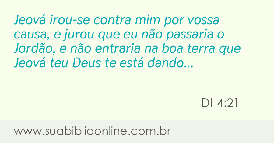 O Senhor se indignou contra mim por vossa causa, e jurou que eu não passaria o Jordão, e que não entraria na boa terra que o Senhor vosso Deus vos dá por herança;