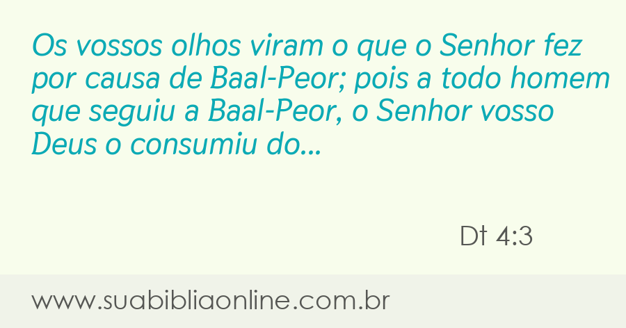 Os vossos olhos viram o que o Senhor fez por causa de Baal-Peor; pois a todo homem que seguiu a Baal-Peor, o Senhor vosso Deus o consumiu do meio de vós.