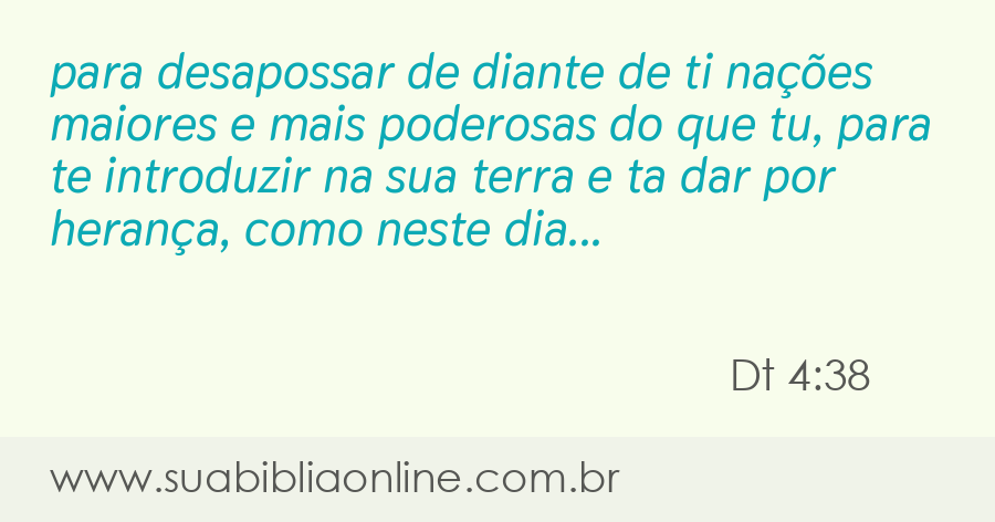 para desapossar de diante de ti nações maiores e mais poderosas do que tu, para te introduzir na sua terra e te dar por herança, como neste dia se vê.