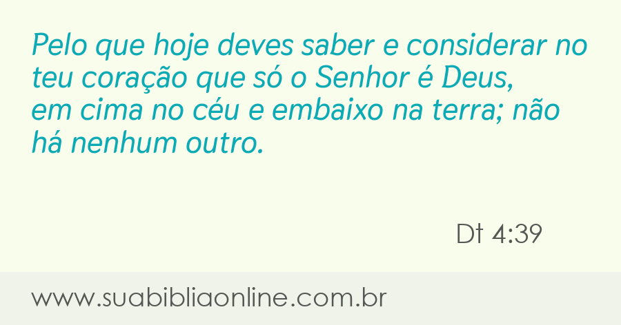 Pelo que hoje deves saber e considerar no teu coração que só o Senhor é Deus, em cima no céu e embaixo na terra; não há nenhum outro.