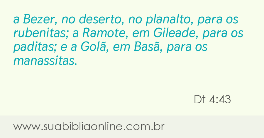 a Bezer, no deserto, no planalto, para os rubenitas; a Ramote, em Gileade, para os paditas; e a Golã, em Basã, para os manassitas.