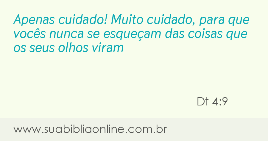 Tão-somente guarda-te a ti mesmo, e guarda bem a tua alma, para que não te esqueças das coisas que os teus olhos viram, e que elas não se apaguem do teu coração todos os dias da tua vida; porém as contarás a teus filhos, e aos filhos de teus filhos;