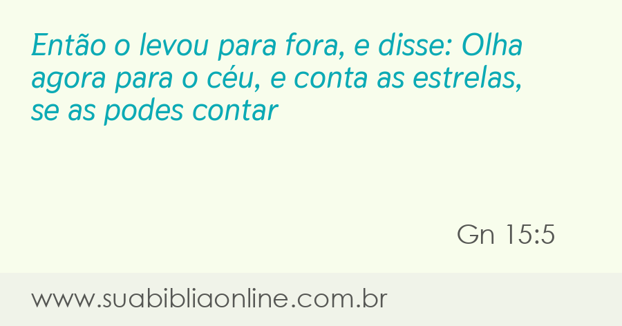 Então o levou para fora, e disse: Olha agora para o céu, e conta as estrelas, se as podes contar; e acrescentou-lhe: Assim será a tua descendência.