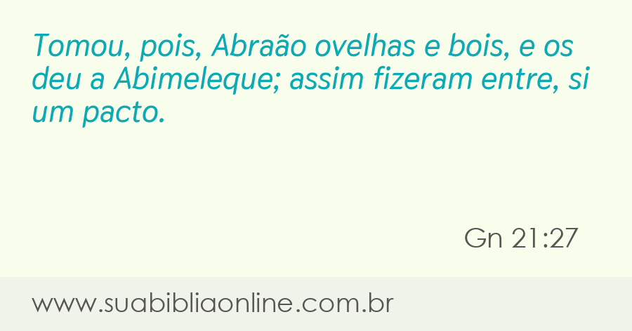 Tomou, pois, Abraão ovelhas e bois, e os deu a Abimeleque; assim fizeram entre, si um pacto.