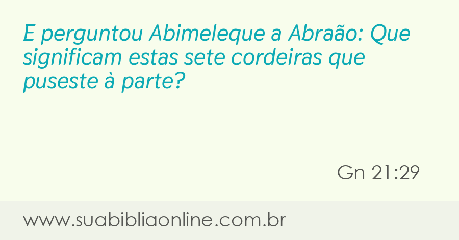 E perguntou Abimeleque a Abraão: Que significam estas sete cordeiras que puseste à parte?