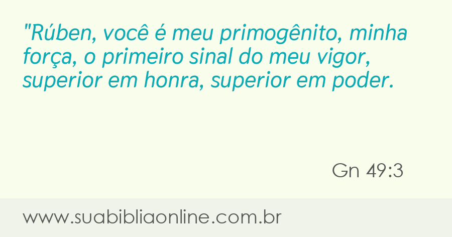 Faça sua busca na Bíblia. Sua Bíblia Online.Versão completa da Bíblia em Português com todos os livros, capítulos e versículos bíblicos.Rúben, tu és meu primogênito, minha força e as primícias do meu vigor, preeminente em dignidade e preeminente em poder.