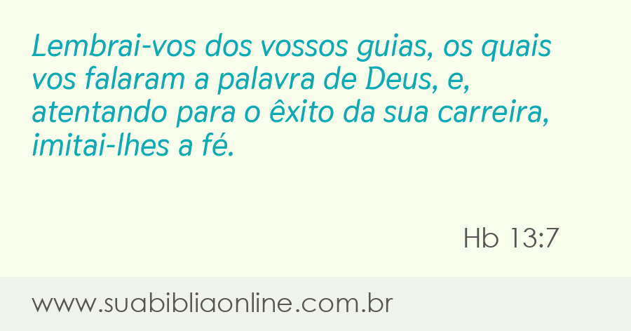 Lembrai-vos dos vossos guias, os quais vos falaram a palavra de Deus, e, atentando para o êxito da sua carreira, imitailhes a fé.