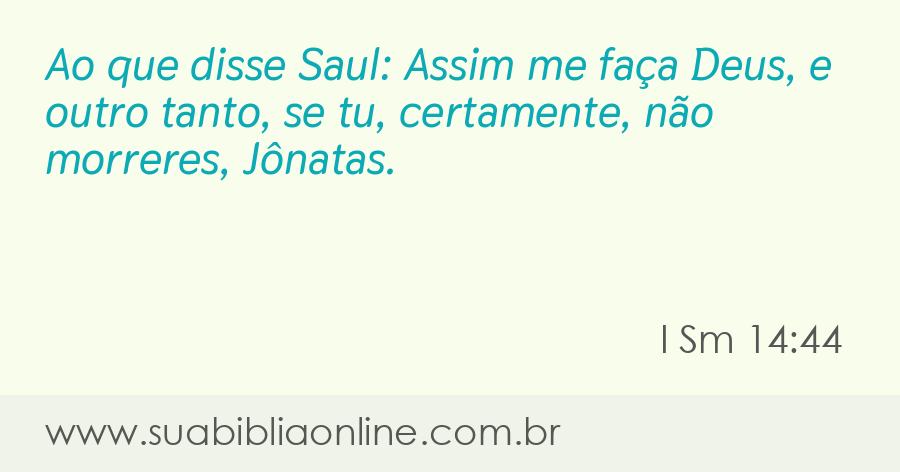 Ao que disse Saul: Assim me faça Deus, e outro tanto, se tu, certamente, não morreres, Jônatas.
