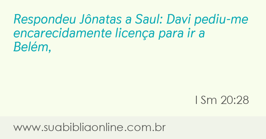 Respondeu Jônatas a Saul: Davi pediu-me encarecidamente licença para ir a Belém,