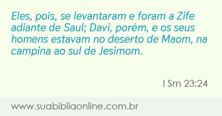 Faça sua busca na Bíblia. Sua Bíblia Online.Versão completa da Bíblia em Português com todos os livros, capítulos e versículos bíblicos.Eles, pois, se levantaram e foram a Zife adiante de Saul; Davi, porém, e os seus homens estavam no deserto de Maom, na campina ao sul de Jesimom.