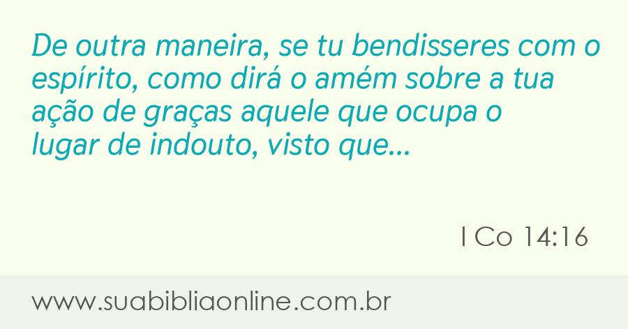De outra maneira, se tu bendisseres com o espírito, como dirá o amém sobre a tua ação de graças aquele que ocupa o lugar de indouto, visto que não sabe o que dizes?