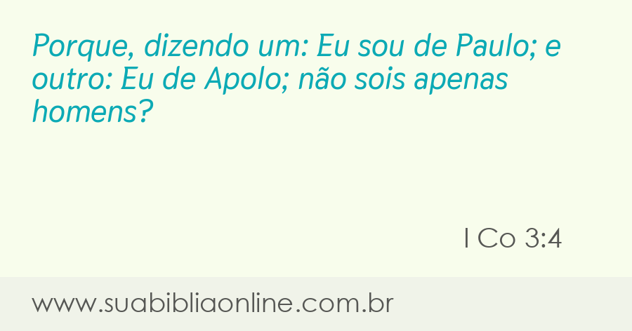 Porque, dizendo um: Eu sou de Paulo; e outro: Eu de Apolo; não sois apenas homens?
