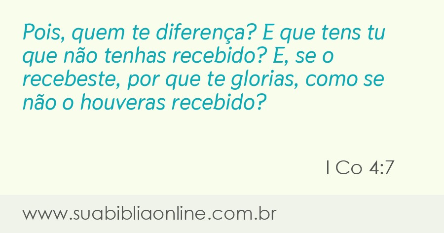 Pois, quem te diferença? E que tens tu que não tenhas recebido? E, se o recebeste, por que te glorias, como se não o houveras recebido?