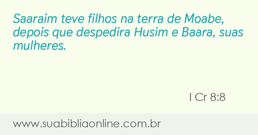 Saaraim teve filhos na terra de Moabe, depois que despedira Husim e Baara, suas mulheres.