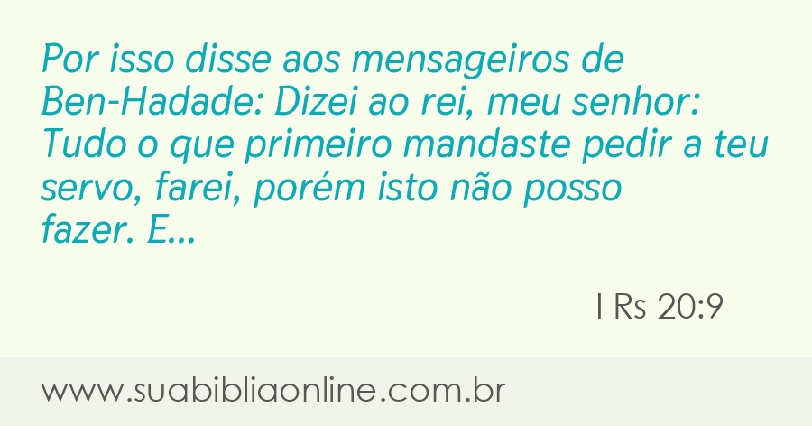 Pelo que disse aos mensageiros de Bene-Hadade: Dizei ao rei, meu senhor: Tudo o que a princípio mandaste pedir a teu servo, farei; porém isto não posso fazer. Voltaram os mensageiros, e lhe levaram a resposta.