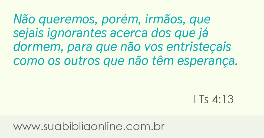 Não queremos, porém, irmãos, que sejais ignorantes acerca dos que já dormem, para que não vos entristeçais como os outros que não têm esperança.