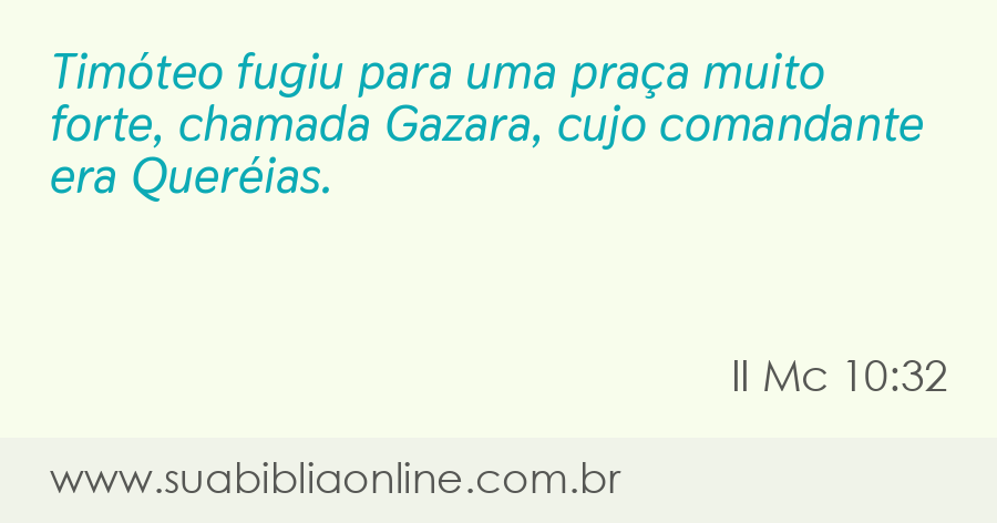 Timóteo fugiu para uma praça muito forte, chamada Gazara, cujo comandante era Queréias.