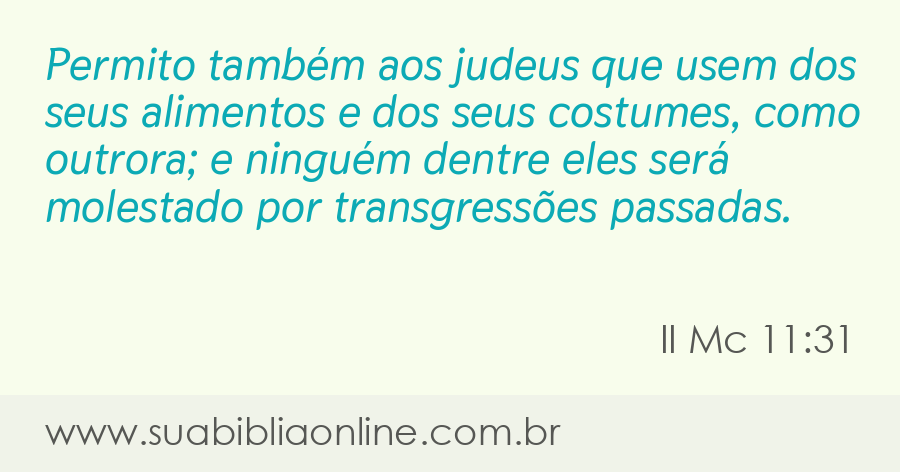 Permito também aos judeus que usem dos seus alimentos e dos seus costumes, como outrora; e ninguém dentre eles será molestado por transgressões passadas.