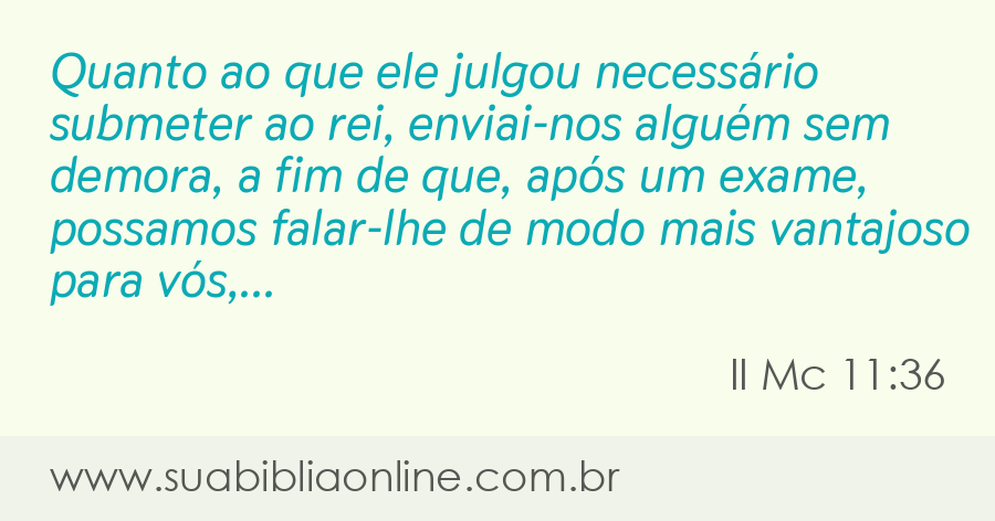 Quanto ao que ele julgou necessário submeter ao rei, enviai-nos alguém sem demora, a fim de que, após um exame, possamos falar-lhe de modo mais vantajoso para vós, porque vamos para Antioquia.
