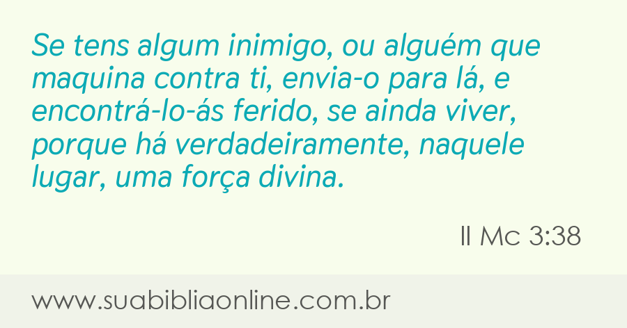 Se tens algum inimigo, ou alguém que maquina contra ti, envia-o para lá, e encontrá-lo-ás ferido, se ainda viver, porque há verdadeiramente, naquele lugar, uma força divina.