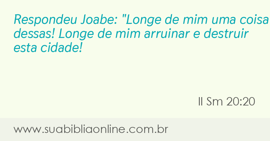 Então respondeu Joabe, e disse: Longe, longe de mim que eu tal faça, que eu devore ou arruíne!