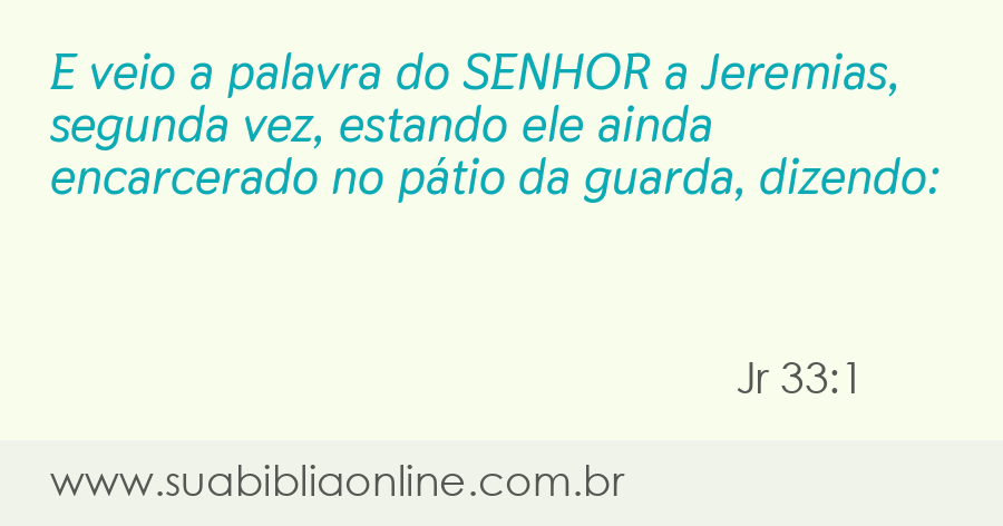 E veio a palavra do Senhor a Jeremias, segunda vez, estando ele ainda encarcerado no pátio da guarda, dizendo: