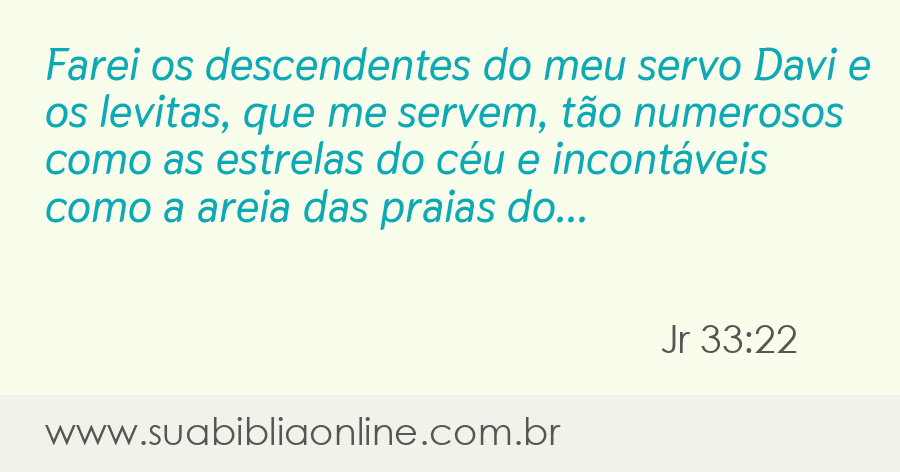 Assim como não se pode contar o exército dos céus, nem medir-se a areia do mar, assim multiplicarei a descendência de Davi, meu servo, e os levitas, que ministram diante de mim.