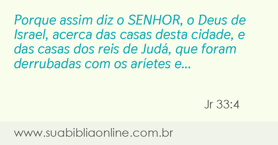 Pois assim diz o Senhor, o Deus de Israel, acerca das casas desta cidade, e acerca das casas dos reis de Judá, que foram demolidas para fazer delas uma defesa contra os valados e contra a espada;