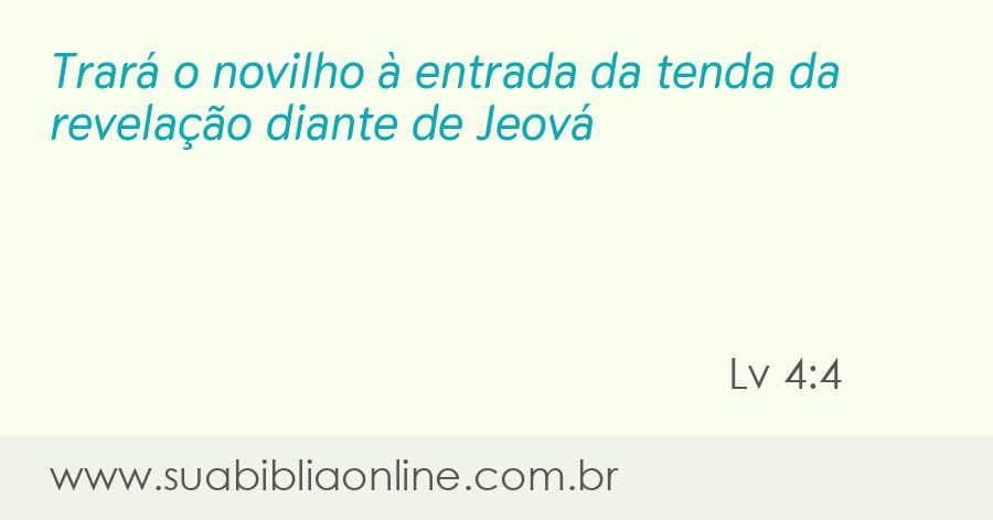 Faça sua busca na Bíblia. Sua Bíblia Online.Versão completa da Bíblia em Português com todos os livros, capítulos e versículos bíblicos.Trará o novilho à porta da tenda da revelação, perante o Senhor; porá a mão sobre a cabeça do novilho e o imolará perante o Senhor.