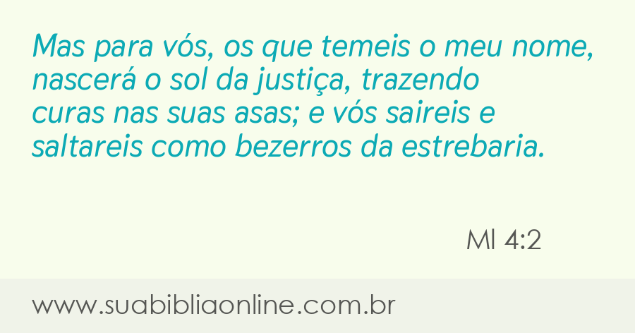 Mas para vós, os que temeis o meu nome, nascerá o sol da justiça, trazendo curas nas suas asas; e vós saireis e saltareis como bezerros da estrebaria.