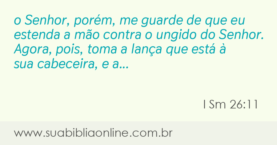 O Senhor me livre de levantar a mão contra seu ungido. Agora, vamos pegar a lança e o jarro com água que estão perto da cabeça dele, e vamos embora".