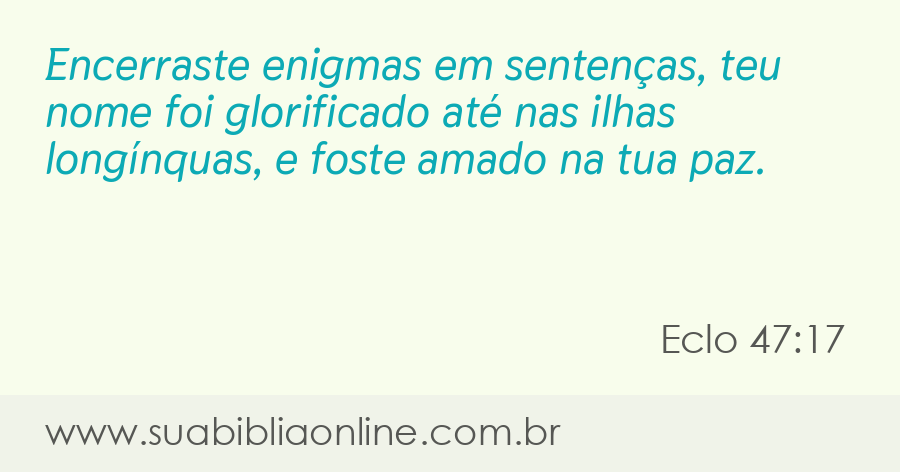 Encerraste enigmas em sentenças, teu nome foi glorificado até nas ilhas longínquas, e foste amado na tua paz.