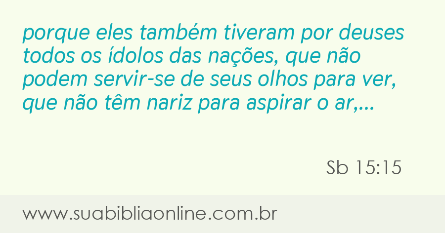 Faça sua busca na Bíblia. Sua Bíblia Online.Versão completa da Bíblia em Português com todos os livros, capítulos e versículos bíblicos.porque eles também tiveram por deuses todos os ídolos das nações, que não podem servir-se de seus olhos para ver, que não têm nariz para aspirar o ar, nem ouvidos para ouvir, nem os dedos das mãos para apalpar, e cujos pés são incapazes de andar;